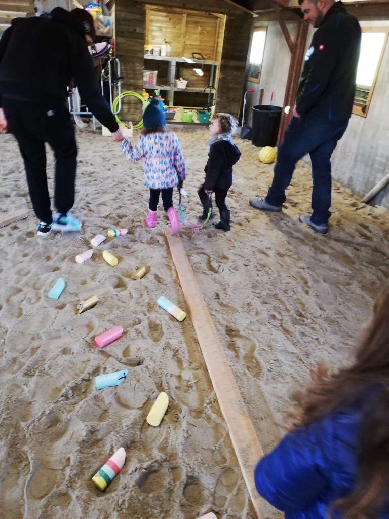 - Parcours fait avec le poney à la découverte d’un thème bien précis comme par exemple le corps humain
